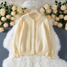 Crocheted Hollow-out Long Sleeve Single-breasted Sweater Coat